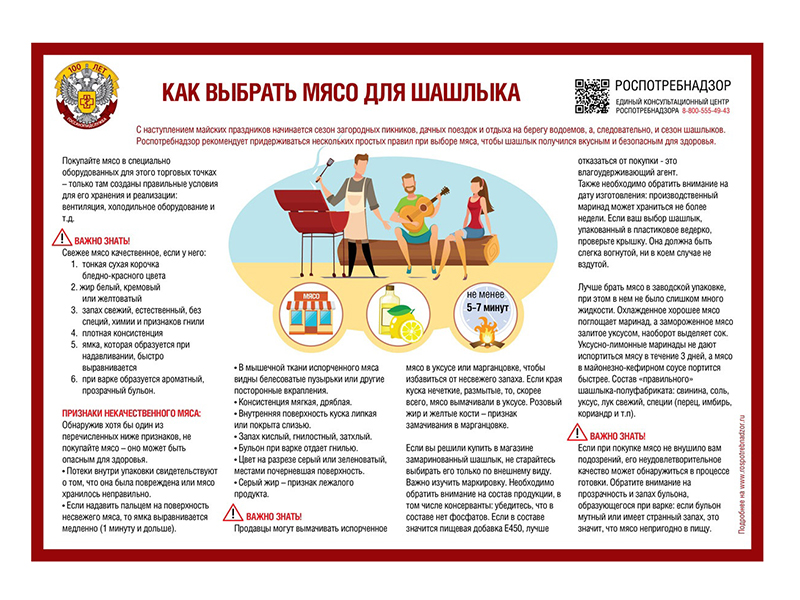Рекомендуем придерживаться нескольких простых правил при выборе мяса, чтобы шашлык получился вкусным и безопасным для здоровья.