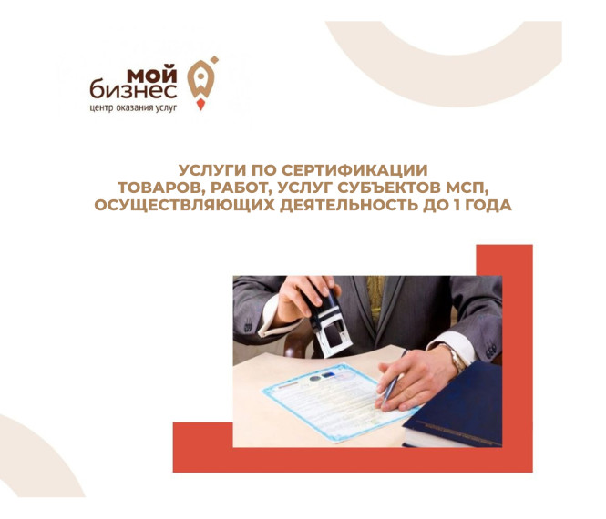 Услуги по сертификации товаров, работ, услуг субъектов МСП, осуществляющих деятельность до 1 года