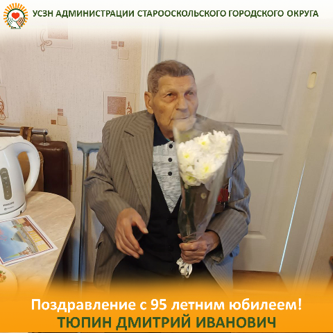 1 апреля поздравления с 95-летием принимал труженик тыла, ветеран труда ДМИТРИЙ ИВАНОВИЧ ТЮПИН от специалиста отдела социальной поддержки управления социальной защиты населения администрации Старооскольского городс