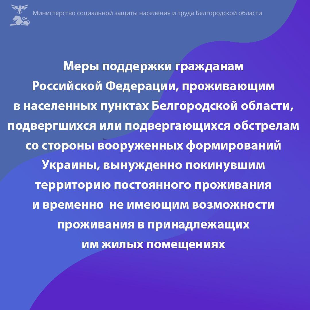 Правительством региона установлена дополнительная мера поддержки жителей области, которые не могут вернуться в свои дома в населенных пунктах, подвергшихся или подвергающихся обстрелам со стороны вооруженных формирований Украины.