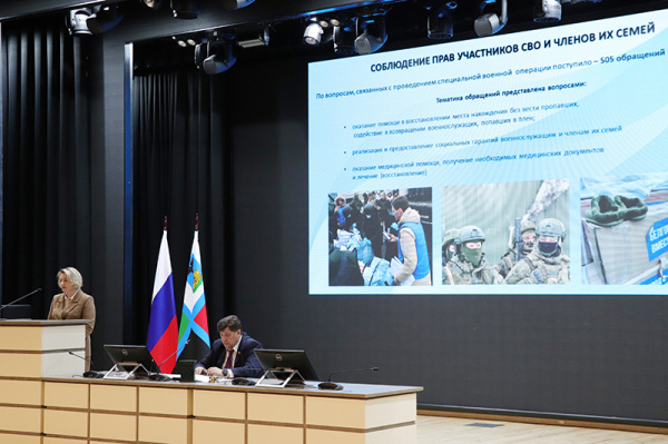 Подробнее Жанна Киреева остановилась на теме защиты и соблюдения прав бойцов, которые сейчас сражаются за страну. От частных вопросов, таких как помощь в восстановлении военного билета, до предоставления социальных гарантий военнослужащим и членам их семей – спектр обращений широкий, а их количество в 2023 году выросло в два раза. В этой работе, отметила Жанна Николаевна, без живого общения и постоянного контакта с бойцами и их близкими, а также всех уровней власти – просто нельзя.