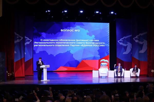 XXXIII региональная партийная конференция объединила 168 делегатов из 22 муниципалитетов Белгородской области. В её работе приняли участие Секретарь регионального отделения партии «Единая Россия», Губернатор Белгородской области Вячеслав Гладков , первый заместитель Секретаря реготделения партии, председатель регионального парламента Юрий Клепиков , а также главный федеральный инспектор по Белгородской области Ольга Кремнева , начальник управления Минюста России по Белгородской области Александр Черепанов , глава регионального Избиркома Игорь Лазарев .