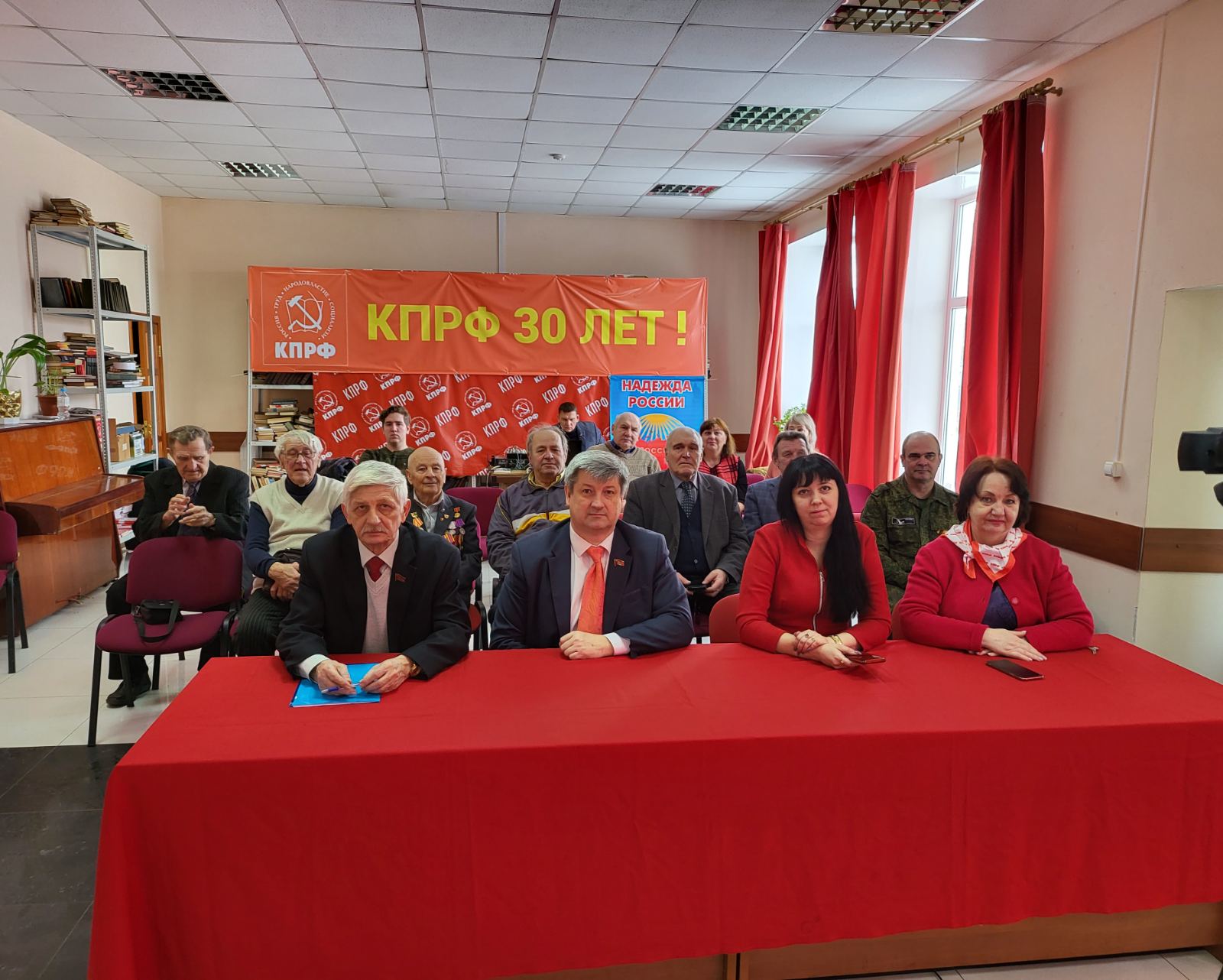 Затем участникам совещания был продемонстрирован документальный фильм, подготовленный телеканалом «Красная Линия» и посвященный 30-летию КПРФ.