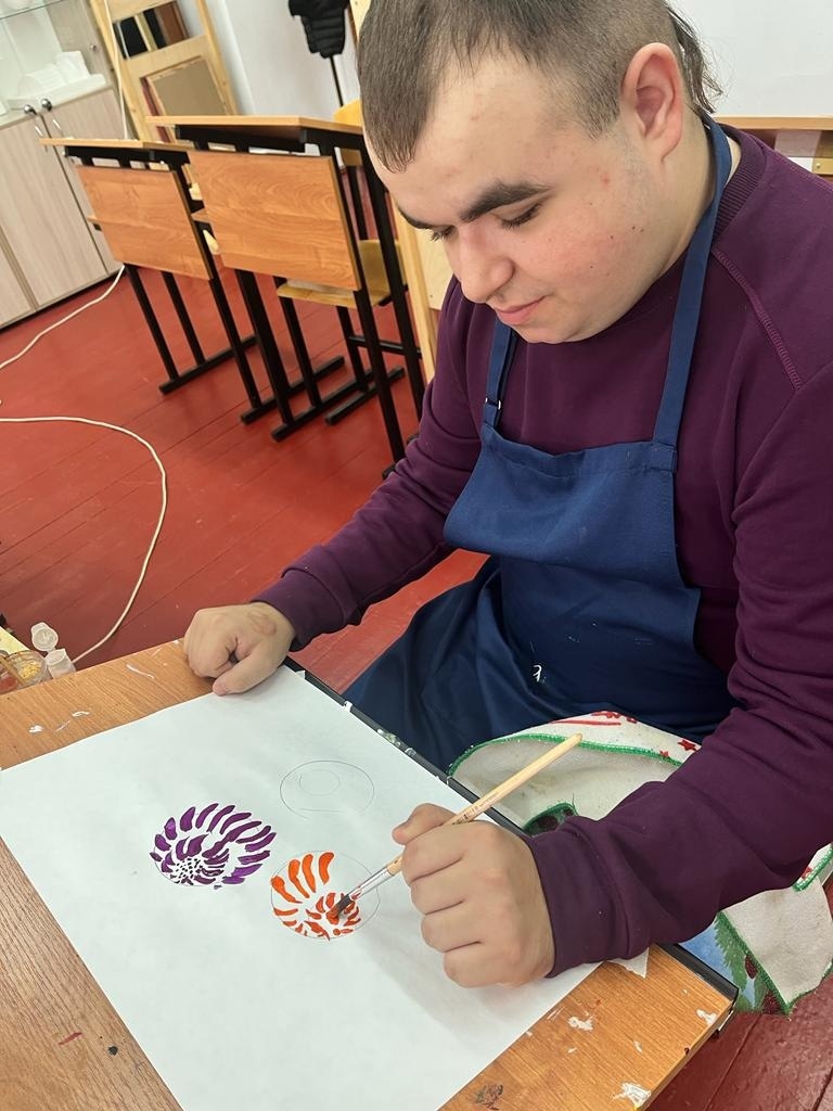 Обучающийся творческого объединения "Цветной мир" Артур Звягинцев под руководством педагога дополнительного образования Софии Юрьевны Левченко сегодня на консультации освоил технику рисования по трафарету.