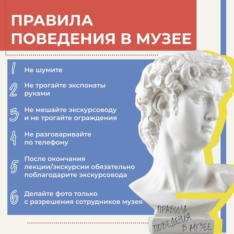 Любой музей — это культурное учреждение, в котором действуют особенные правила этикета Сохраните себе памятку, как правильно вести себя во время экскурсии,