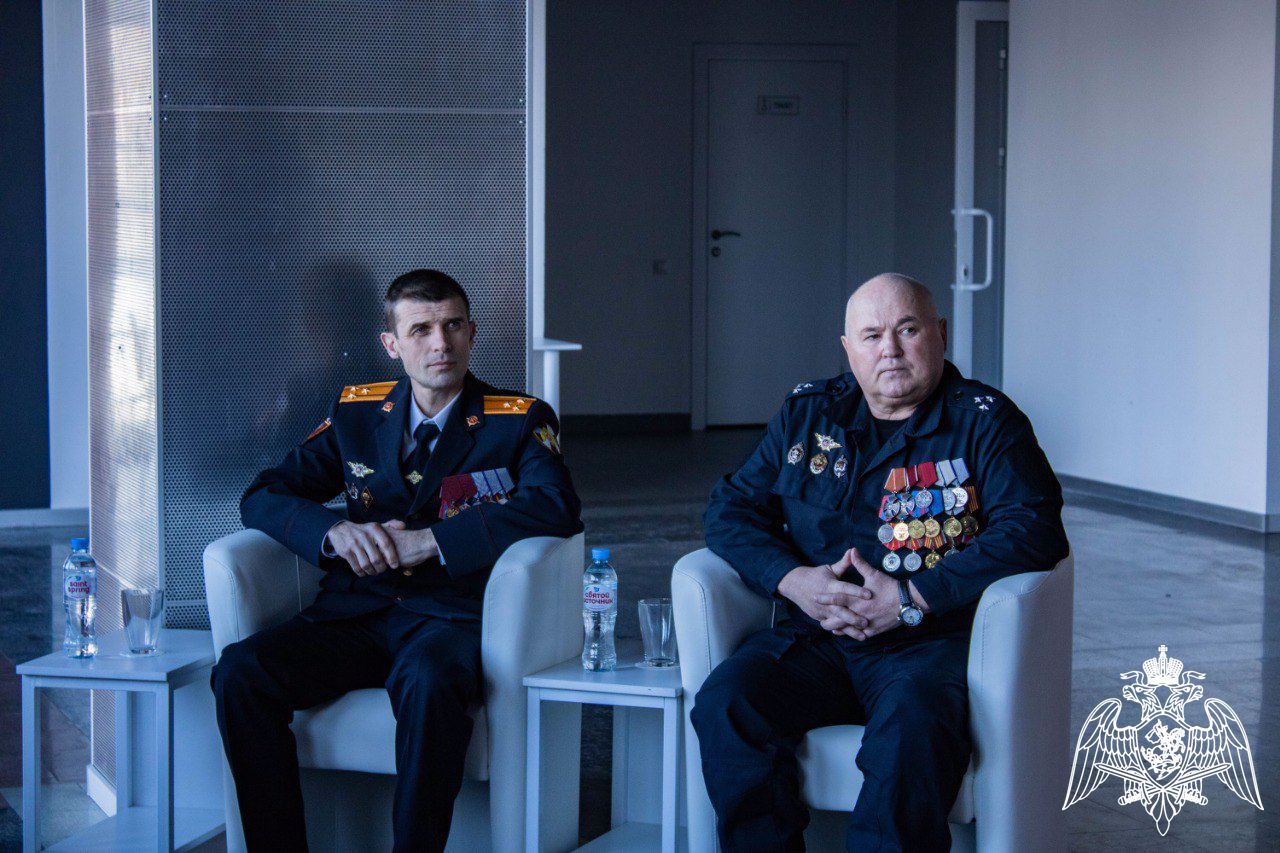 В День защитника Отечества заместитель начальника Управления Росгвардии по Белгородской области полковник полиции Алексей Арбузов и ветеран СОБР «Белогор» полковник полиции в отставке Александр Лопатков провели патриотический семинар с учащимися областного центра.