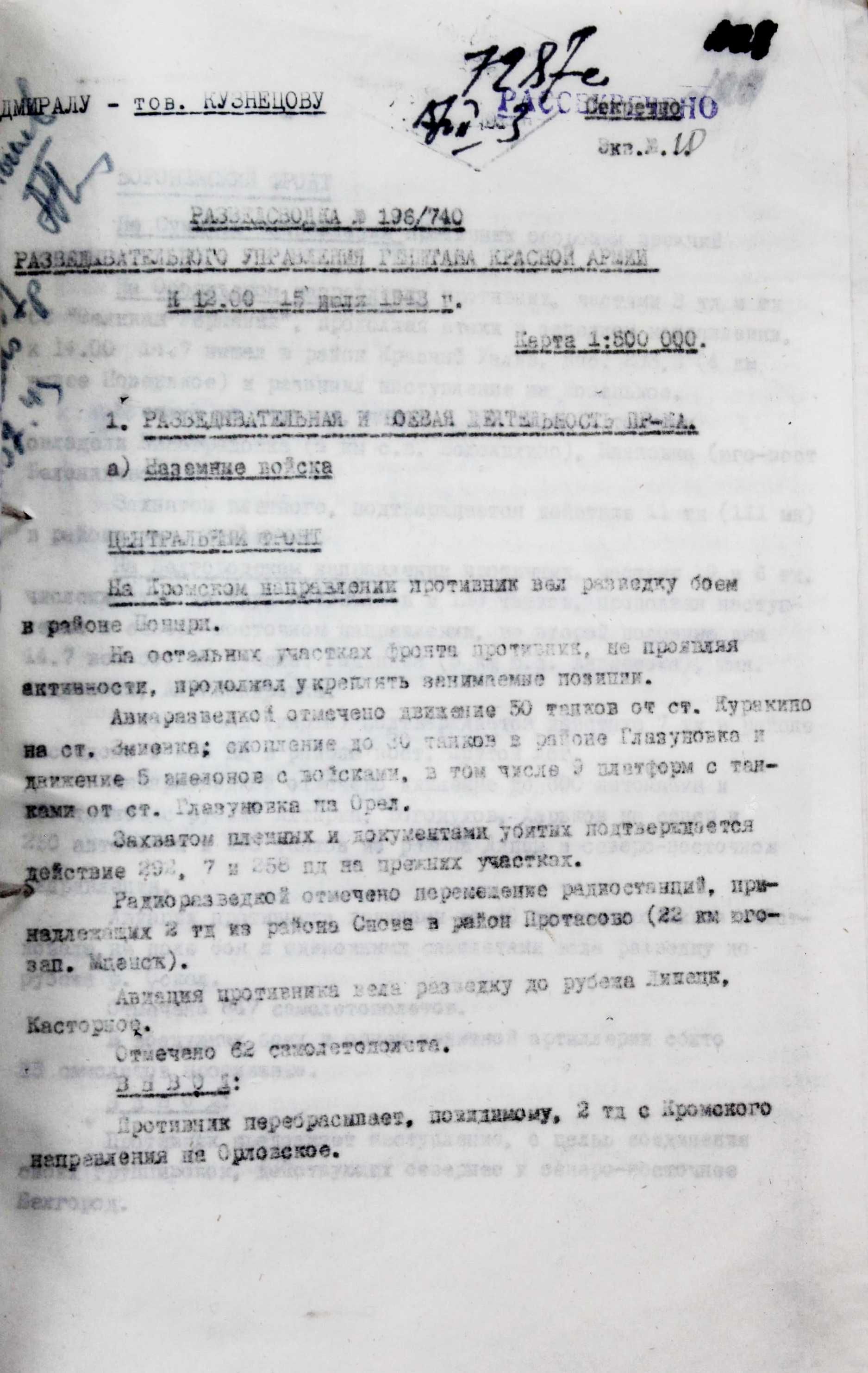РАЗВЕДСВОДКИ ЗА 15 ИЮЛЯ 1943 ГОДА