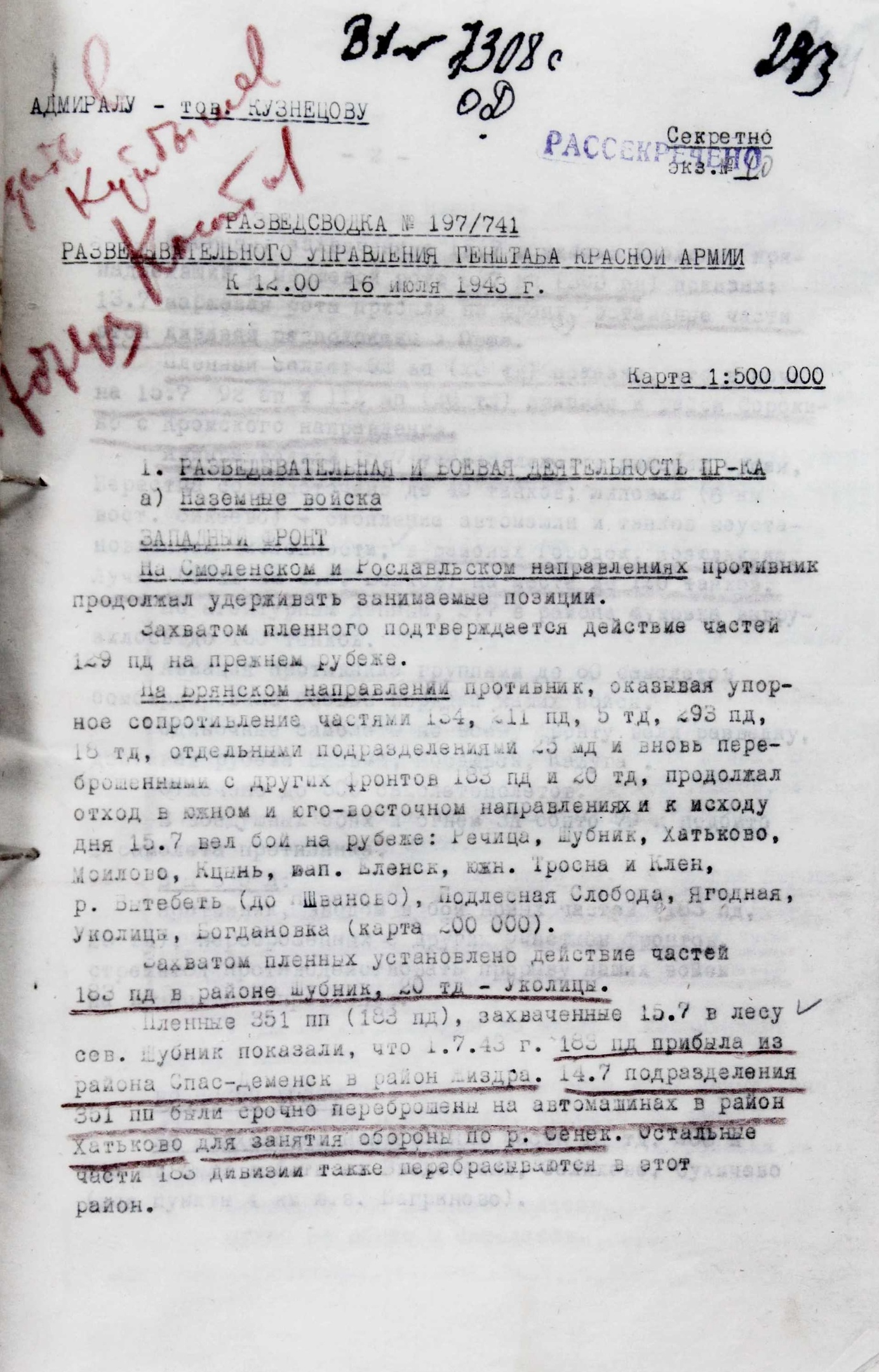 РАЗВЕДСВОДКИ ЗА 16 ИЮЛЯ 1943 ГОДА