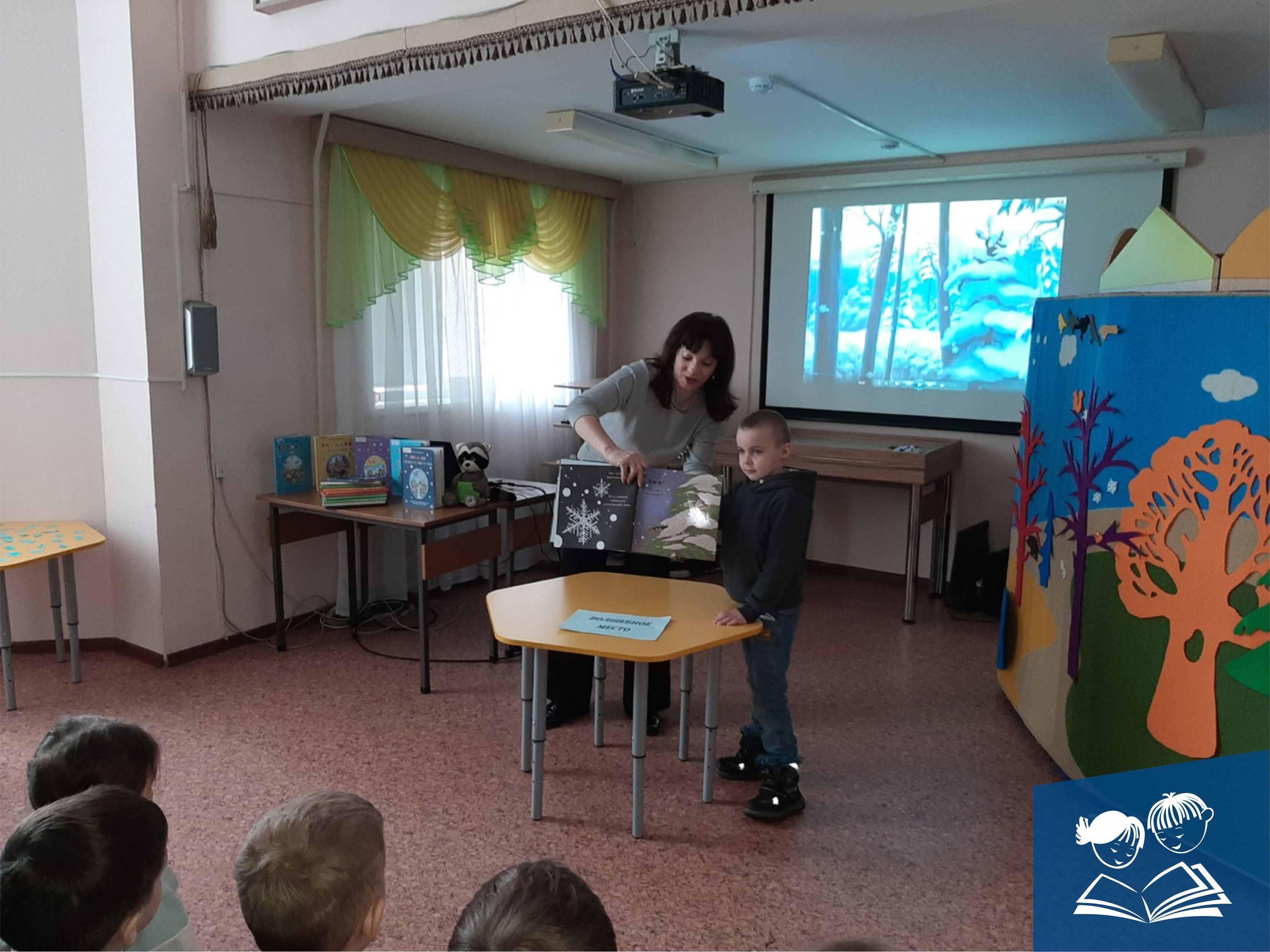 Дети совершили путешествие в волшебный лес к семье енотиков по книге «Еня и Еля. Зимние истории» и приняли участие в мастер-классе «Собери необычную снежинку».