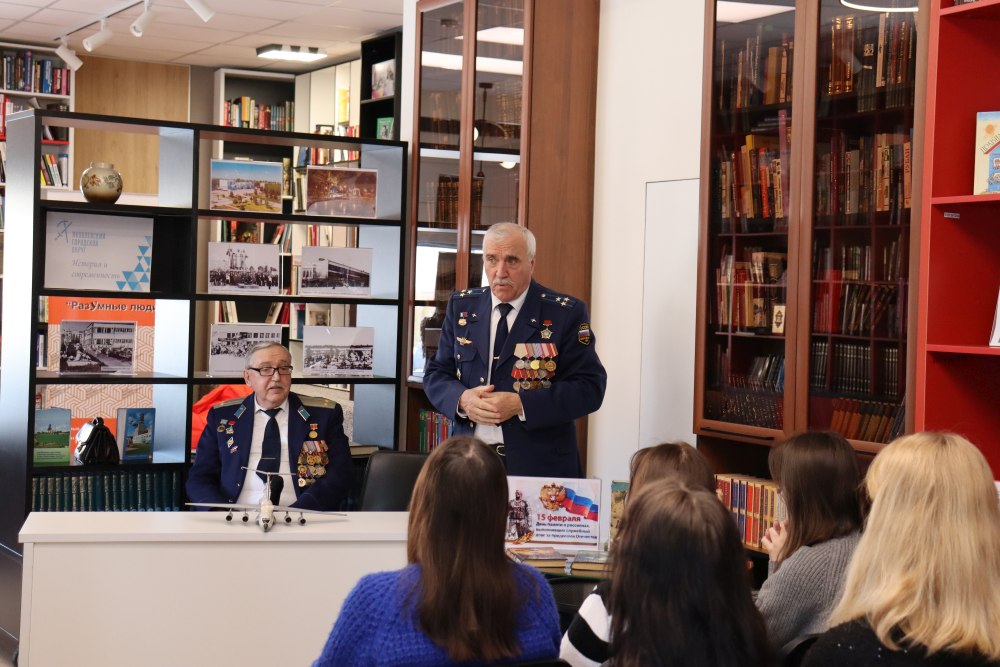 15 февраля – День памяти о россиянах, исполнявших служебный долг за пределами Отечества. В преддверии этой даты состоялся вечер-встреча с участниками трагических событий в Афганистане: заслуженным военным летчиком России, полковником Юрием Дмитриевичем Портянкиным и подполковником Александром Саввичем Матула.