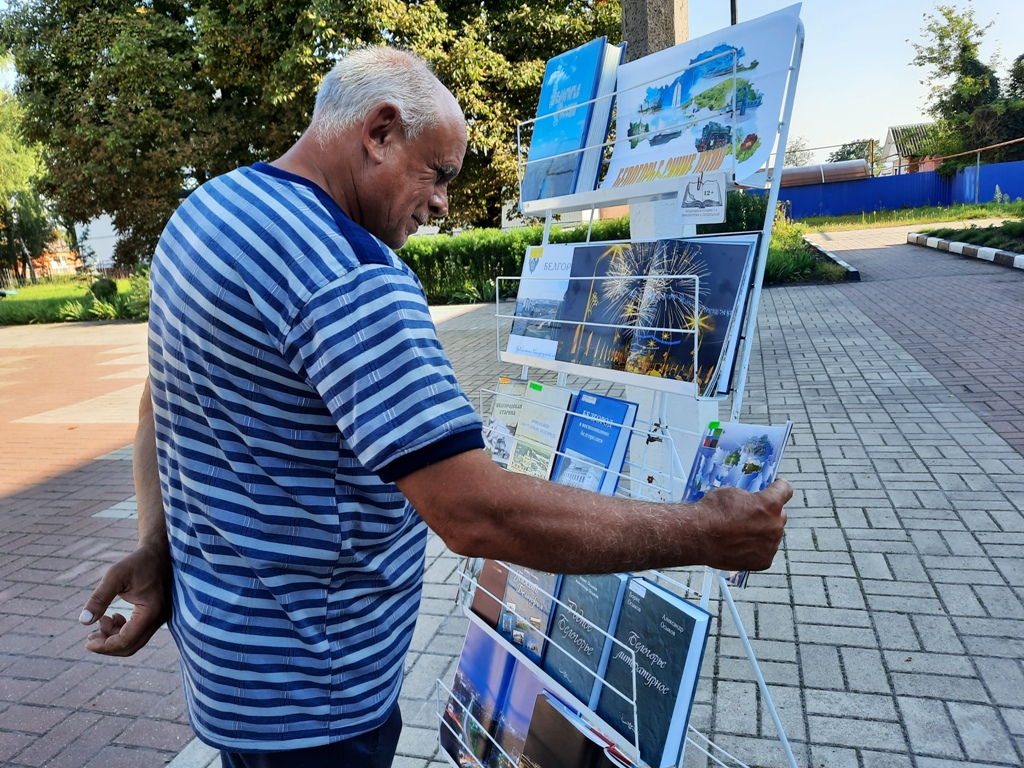 Для жителей и гостей посёлка на Центральной площади Прибрежненской модельной публичной библиотекой была организована книжно-иллюстративная выставка «Белогорье - синие дали»,