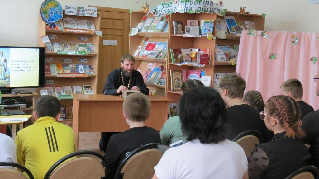 25 мая в Районной детской библиотеке состоялась встреча благочинного Вейделевского церковного округа иерея Дионисия Озерова с учащимися Вейделевской СОШ и воспитанниками реабилитационного центра для несовершеннолетних «Семья».