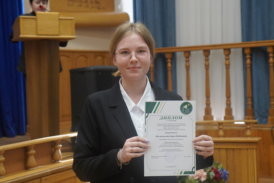 Дипломом I степени - Кравцова Анастасия Романовна, студентка 5 курса, факультет ветеринарной медицины (научный руководитель - Скворцов Владимир Николаевич, профессор, д.вет.н.).