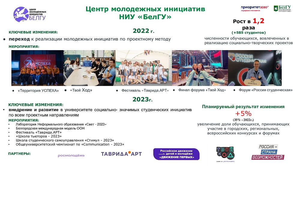 Особую роль в 2023 году будет играть добровольчество, поскольку волонтёрские мероприятия, направленные на помощь беженцам из Украины и вынужденным переселенцам с территории Донбасса, стали территориальной особенностью молодёжной политики.