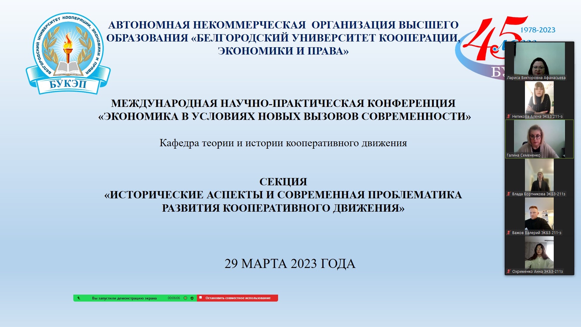 29 марта кафедрой теории и истории кооперативного движения была проведена секция «Исторические аспекты и современная проблематика развития кооперативного движения» в рамках Международной научно-практической конференции «