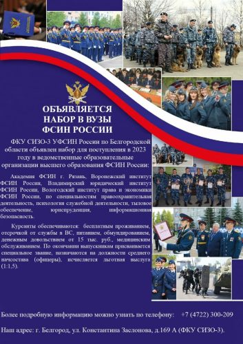 Объявляется набор для поступления в высшие ведомственные учебные заведения Федеральной службы исполнения наказаний России.
