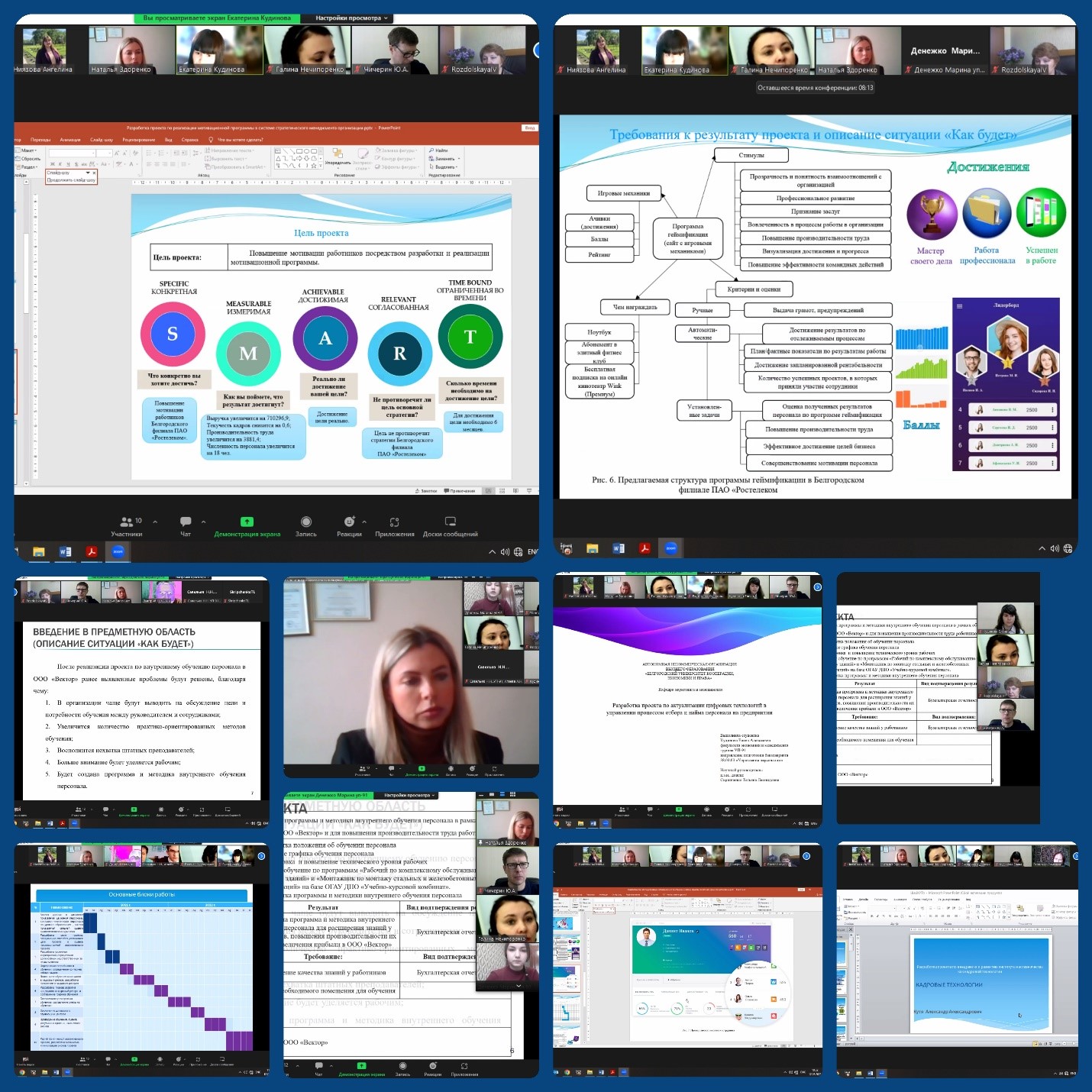 М.С. Денежко, группа УП-91, проект по дисциплине «Кадровые технологии» на тему «Разработка проекта по построению процесса обучения персонала в организации в рамках общей системы развития персонала» (научный руководитель – доц. Д.Н. Немыкин); Е.А. Кудинова, группа МТ-92зу, проект по дисциплине «Стратегический менеджмент» на тему «Разработка проекта по реализации мотивационной программы в системе стратегического менеджмента организации» (научный руководитель – доц. Ю.А. Чичерин); Е.А. Кудинова, группа УП-91, проект по дисциплине «Кадровые технологии» на тему «Разработка проекта по актуализации цифровых технологий в управлении процессом отбора и найма персонала на предприятии» (научный руководитель – доц. Скрипченко Т.Л.); А.А. Кутя, группа УП-91, проект по дисциплине «Кадровые технологии» на тему «Разработка проекта по внедрению и развитию института наставничества как кадровой технологии» (научный руководитель – доц. Л.Р. Яковлева); Н.Н. Савельев, группа УП-91, проект по дисциплине «Кадровые технологии» на тему «Развитие персонала организации с ориентацией на ключевые компетенции» (научный руководитель – доц. А.Н. Агаева).Во время публичной защиты обучающиеся кратко излагали и представляли результаты реализации своих идей. Их выступления были вполне убедительными и целостными, поддерживались презентациями, яркими слайдами, практически во всех защитах соблюдался тайминг.