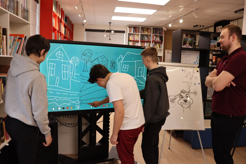 В рамках проекта «Гений места» для всех желающих освоить этапы создания рисованных историй талантливая художница Ксения Вережак провела мастер-класс «Рисуем комиксы», на котором присутствующие учились передавать эмоции выбранного персонажа. Как выяснилось, это очень кропотливая работа и вдохновение приходит не сразу. Но в процессе ребята очень увлеклись и придумали по собственной страничке с нарисованными героями.