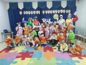Весёлые скоморохи, песни, пляски, раздольные русские игры и, конечно же, блины для ребят на празднике “Широкая масленица” в детском саду “Сказка”