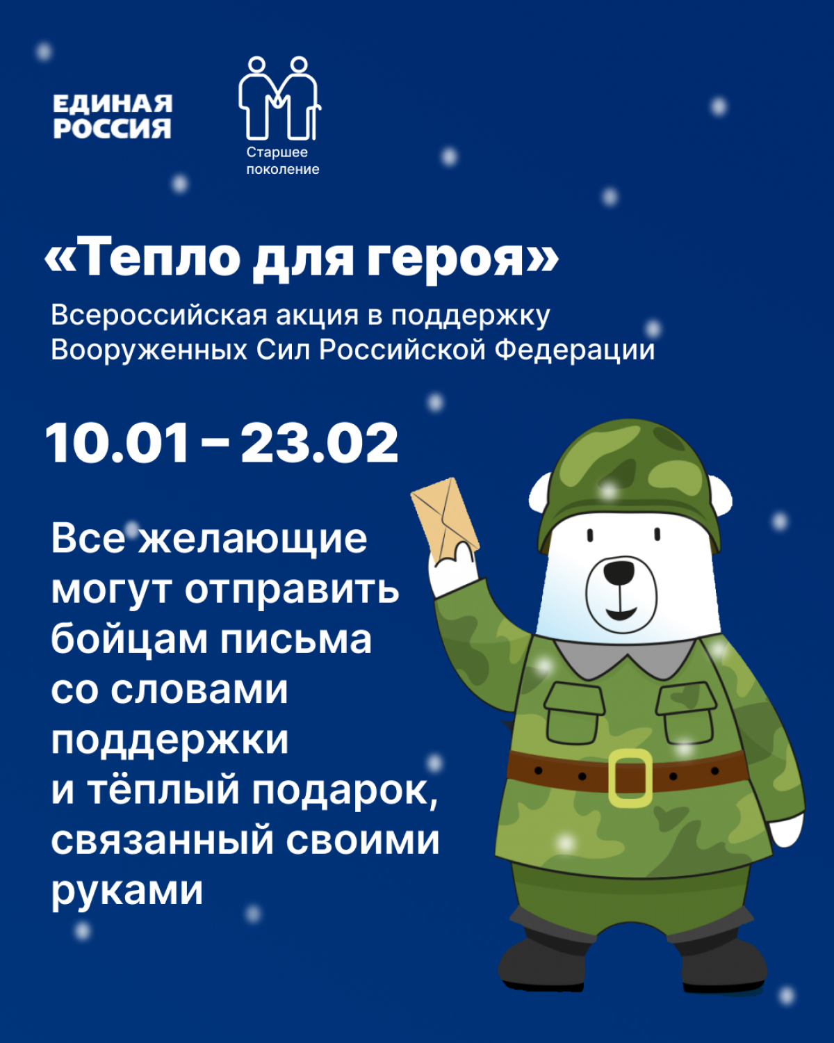 Акция по направлению «Долголетие для всех» партийного мобилизационного проекта «Старшее поколение» в поддержку бойцов продлится до 23 февраля.