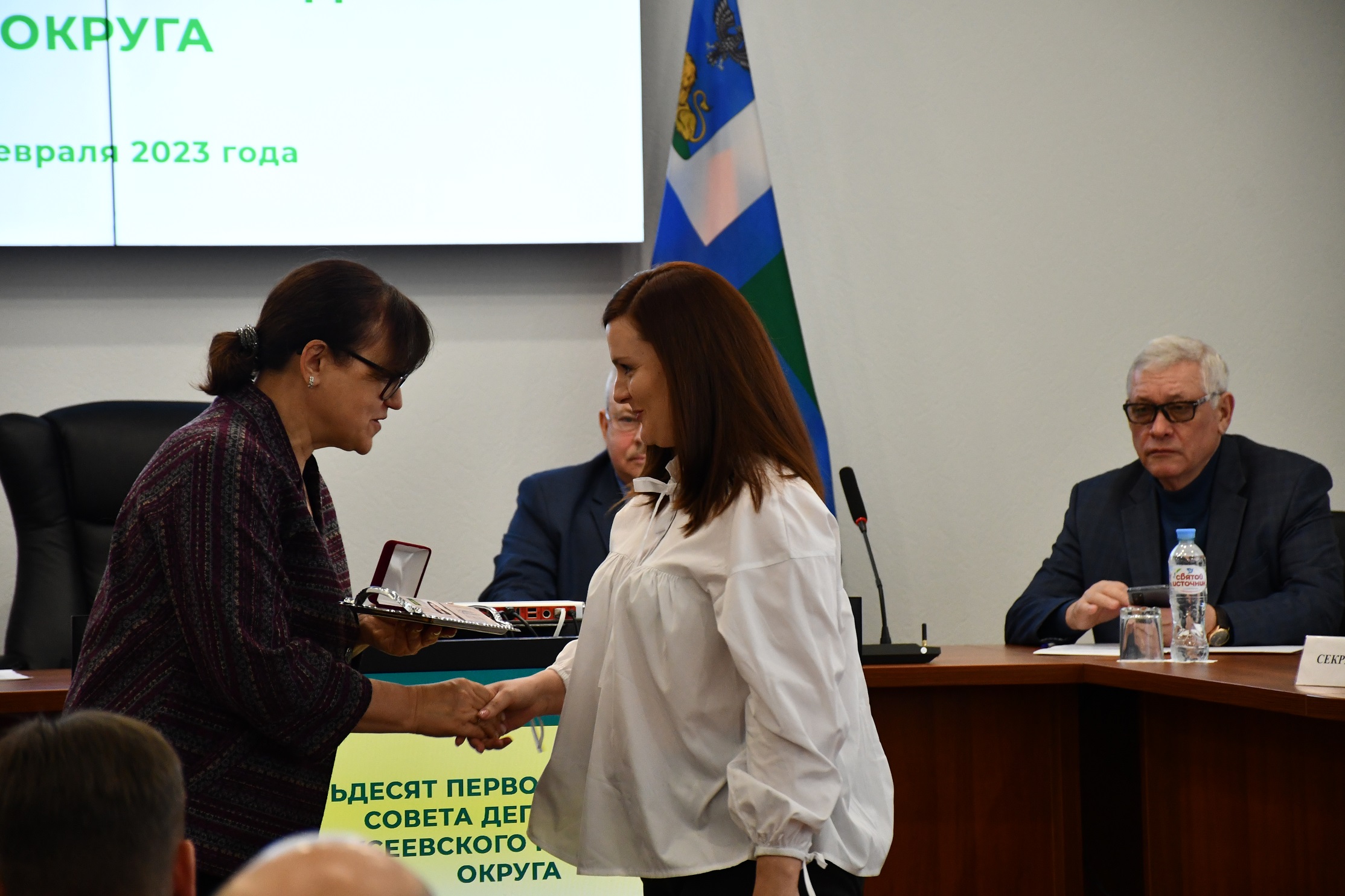 На 51 заседании Совета депутатов в торжественной обстановке Алене Викторовне председатель Ирина Юрьевна Ханина вручила депутатский значок и удостоверение.