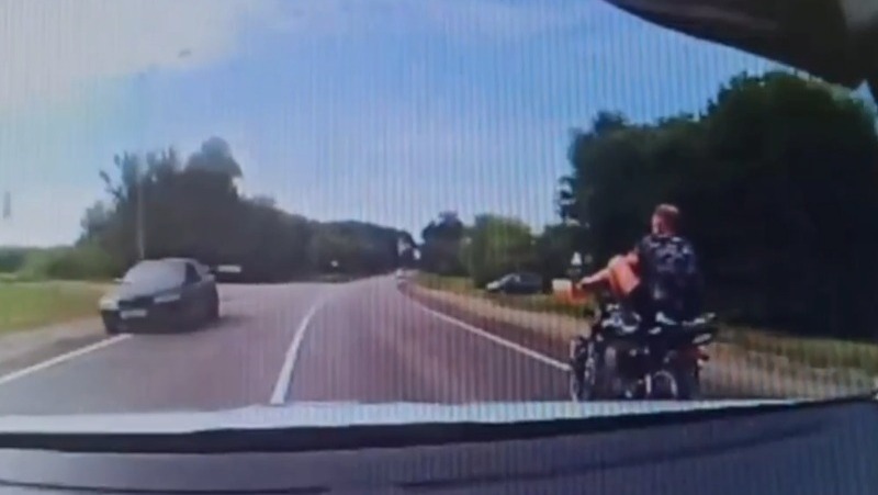 Фото: t.me/gibdd_31 46-летний мужчина ехал без мотошлема, а ноги поместил на панель рулевого управления.