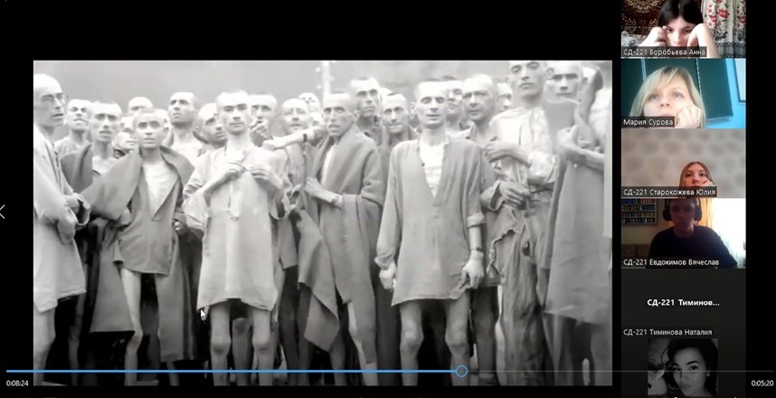 Об ужасах, которые творились в этом лагере, студенты группы СД-221 поговорили на кураторском часе 24 января. Ребята посмотрели несколько архивных видеоматериалов, обсудили причины Холокоста. Материал, подготовленный М.Н. Суровой, вызвал неподдельный эмоциональный отклик со стороны студентов.