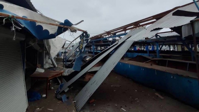 Пострадавших нет. Снарядами повреждены торговые ряды на рынке.