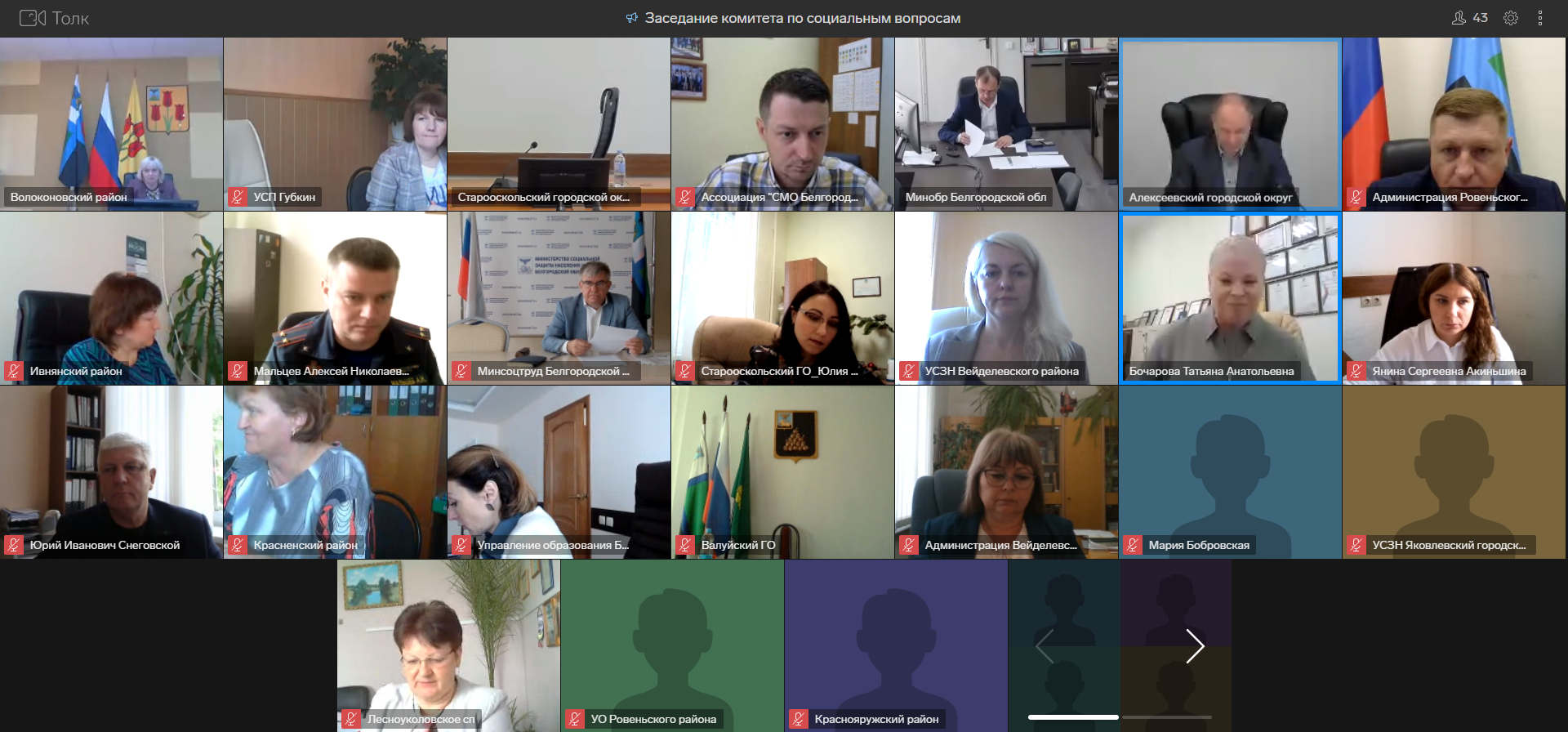 Также на заседании заслушали Буняеву Елену Александровну, руководителя управления социальной защиты населения администрации Яковлевского городского округа и Черноволову Марину Петровну, начальника управления социальной защиты населения администрации Вейделевского района о том, как реализуется поручение протокола заседания рабочей группы по развитию местного самоуправления Совета при полномочном представителе Президента Российской Федерации в Центральном федеральном округе, в части касающейся органов местного самоуправления.