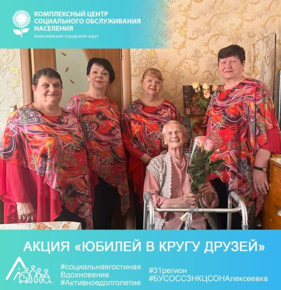 В этот особенный день именинницу сердечно поздравили представители комплексного центра социального обслуживания населения Алексеевского городского округа и геронтоволонтеры местного отделения регионального геронтоволонтерского центра "Серебряные волонтеры Белгородчины" по Алексеевскому городскому округу.