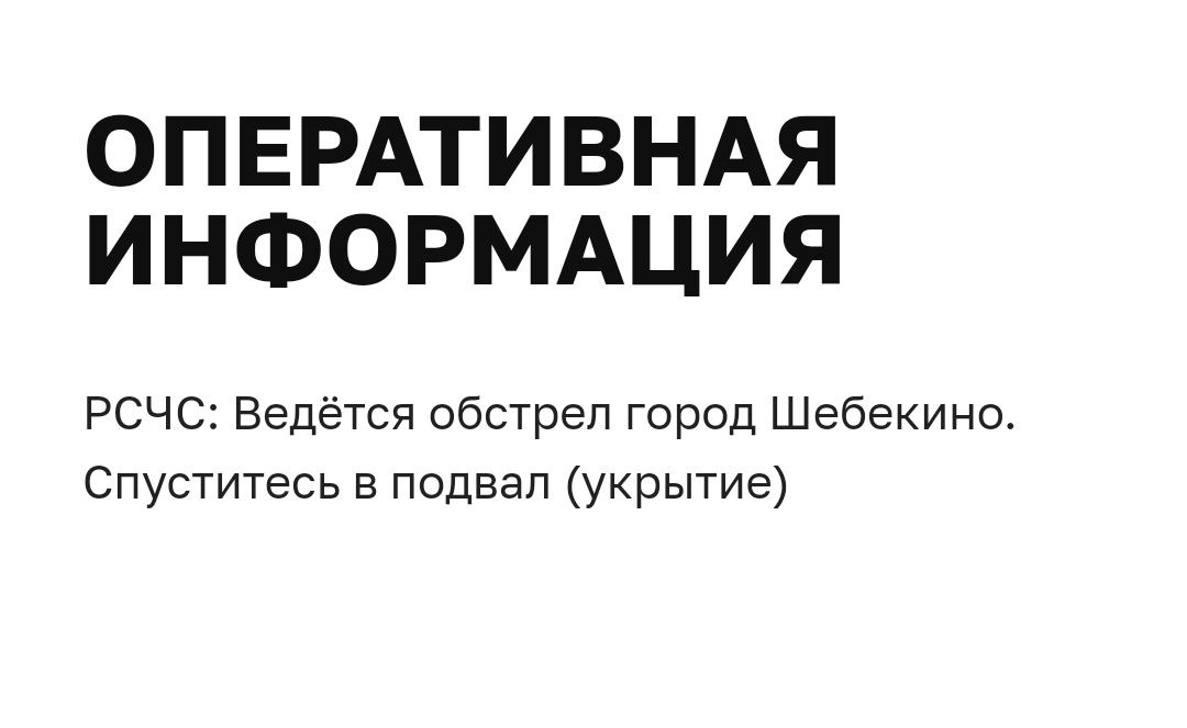 — В настоящий момент идет обстрел города Шебекино. Началось смс-оповещение о необходимости укрыться в безопасном месте. По предварительно информации, есть один пострадавший. Глава округа Владимир Жданов и оперативные службы на месте. Вся дополнительная информация будет позже, — пишет губернатор. Редакция FONAR.TVПоследние новости