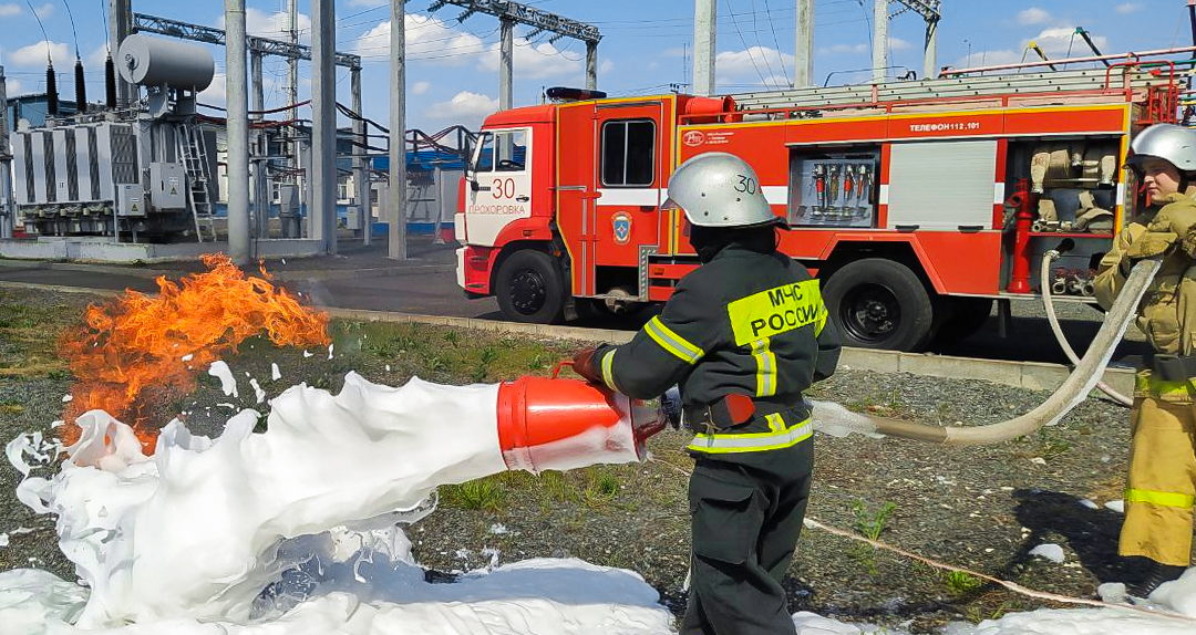Белгородские энергетики и пожарные провели совместную тренировку по тушению пожара на подстанции