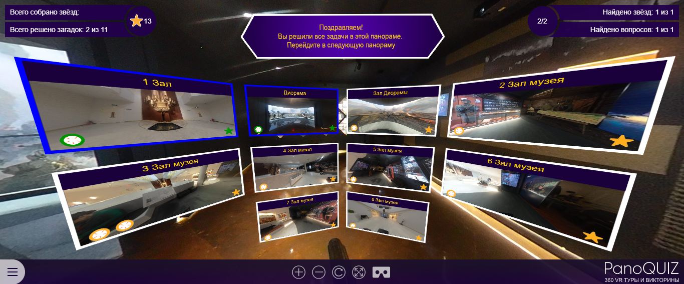 Ответить на вопросы по истории Великой Отечественной войны и узнать некоторые факты о Курской битве можно прямо в браузере или же, для эффекта полного погружения, надев VR-очки и выбрав эту версию игры.