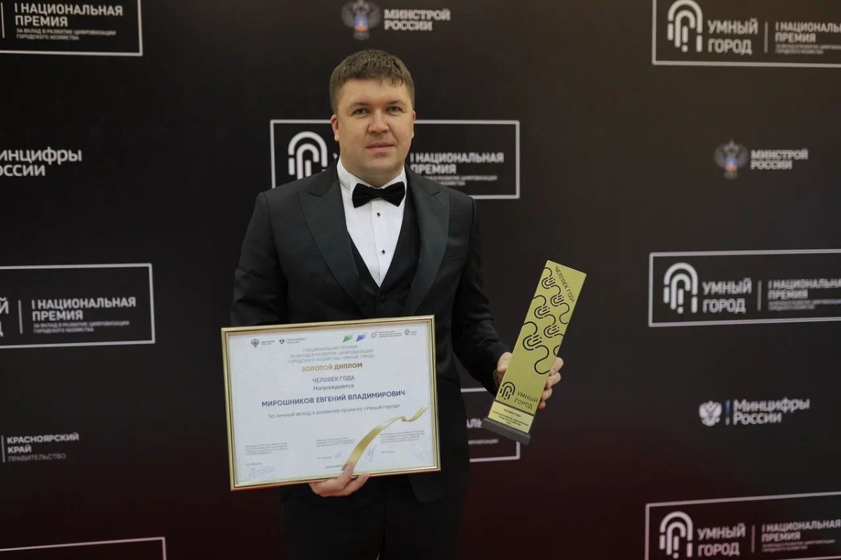 В Красноярске подвели итоги первой национальной премии за вклад в развитие цифровизации горхозяйства «Умный город». «Человеком года» признали первого вице-губернатора Белгородской области — министра цифрового развития Евгения Мирошникова . Его отметили за «личный вклад в развитие проекта „Умный город“».