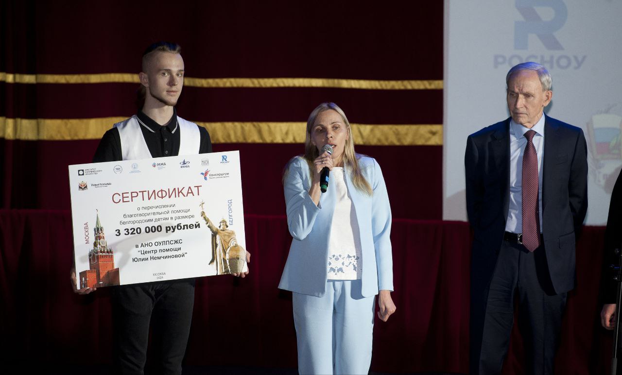 Организаторы акции вручили сертификат на 3 миллиона рублей Юлии Немчиновой организатору фонда помощи белгородцам, попавшим в сложную жизненную ситуацию.