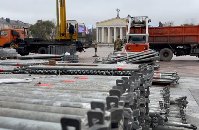 На Соборной площади Белгорода начались монтажные работы по установке ледового катка