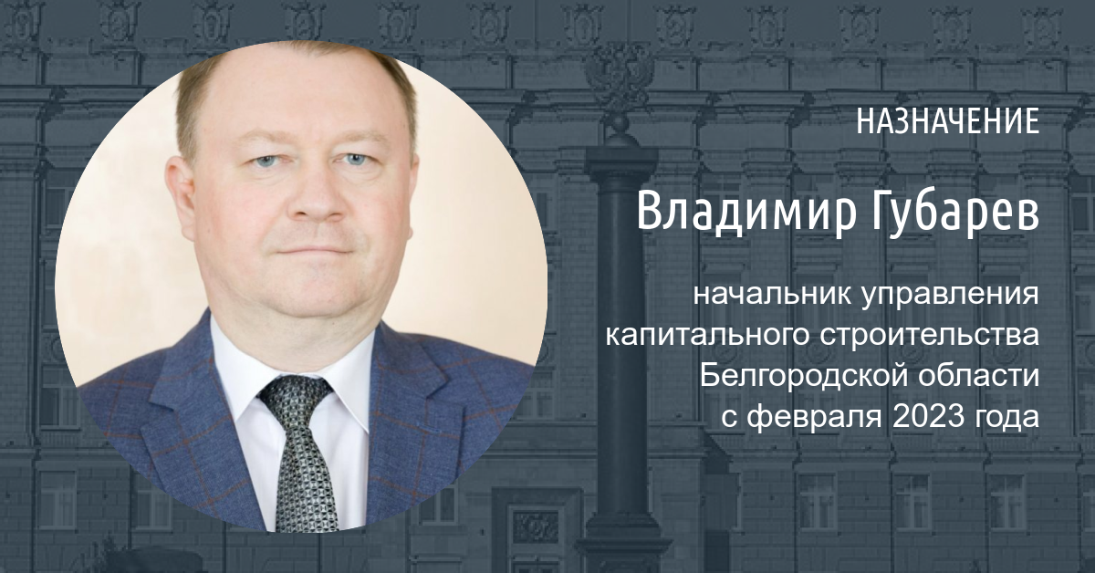 Справка «Фонаря»До прихода в УКС Владимир Губарев работал в министерстве строительства на должности первого заместителя министра. Эту должность он занял в октябре 2022 года. Ранее — в апреле 2022 года — чиновник возглавил департамент соцразвития области, который входит в минстроительства. До этого чиновник работал в депстрое, а до прихода в него — в комитете строительства Белгородского района и УКС Белгородской области.