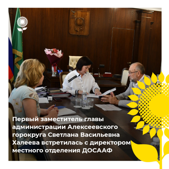 Первый заместитель главы администрации Алексеевского городского округа Светлана Васильевна Халеева провела встречу с директором местного отделения ДОСААФ России по Белгородской обл