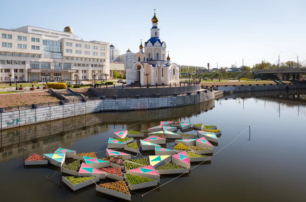 «Калейдоскоп» изначально располагался в реке напротив «БелГУ», но в ноябре несколько треугольников уплыли в парк Победы, где застряли в камышах недалеко от бывшего белгородского зоопарка. Теперь арт-объект достали из воды и увезли.