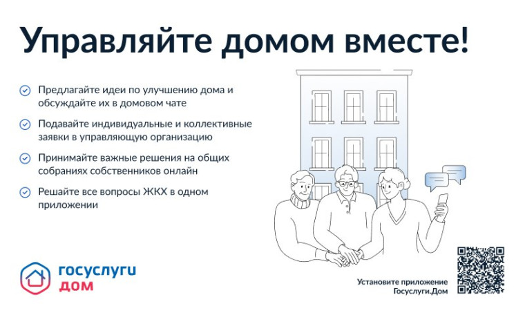 В приложении Госуслуги.Дом есть три функции, которые помогут собственникам квартир обсуждать улучшения для дома в чатах, создавать коллективные обращения в управляющую организацию одной кнопкой и проводить общие собрания собственников без бумажной волокиты. Скачать приложение: