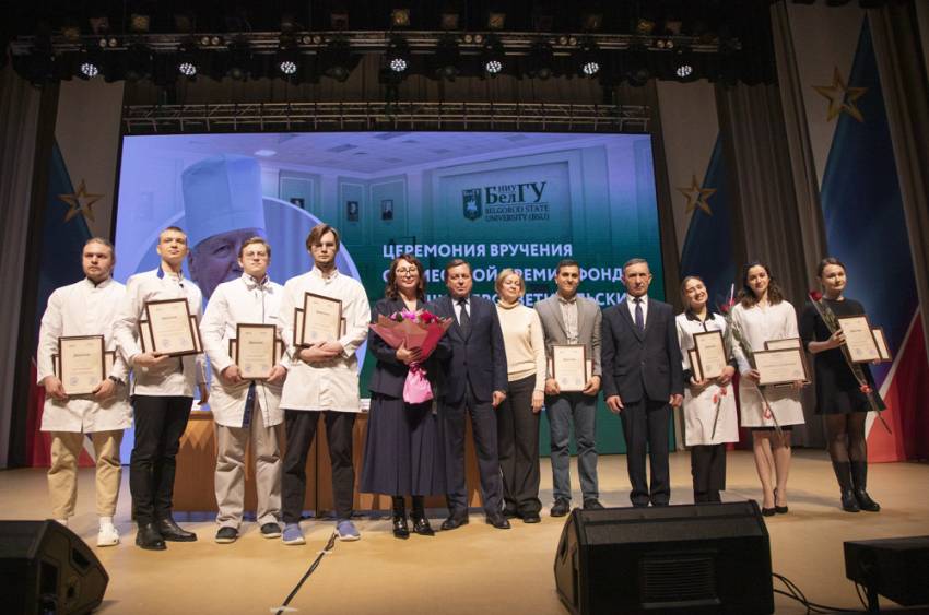В Белгородском госуниверситете провели первую церемонию награждения в честь хирурга и первого директора мединститута НИУ «БелГУ» Владимира Куликовского. Обладателями сертификатов стали девять человек: старший преподаватель кафедры госпитальной хирургии медицинского института Аль-Канани Эдрис Сабах Халаф , ассистент кафедры фармакологии и клинической фармакологии Юлия Степенко , студенты Елизавета Боева , Артём Голиусов , Артём Губарев , Николай Казбан , Максим Коленкин , Дарья Осечкина и Александр Пенечко .