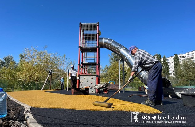 В Белгороед на детской площадке в парке Победы меняют покрытие