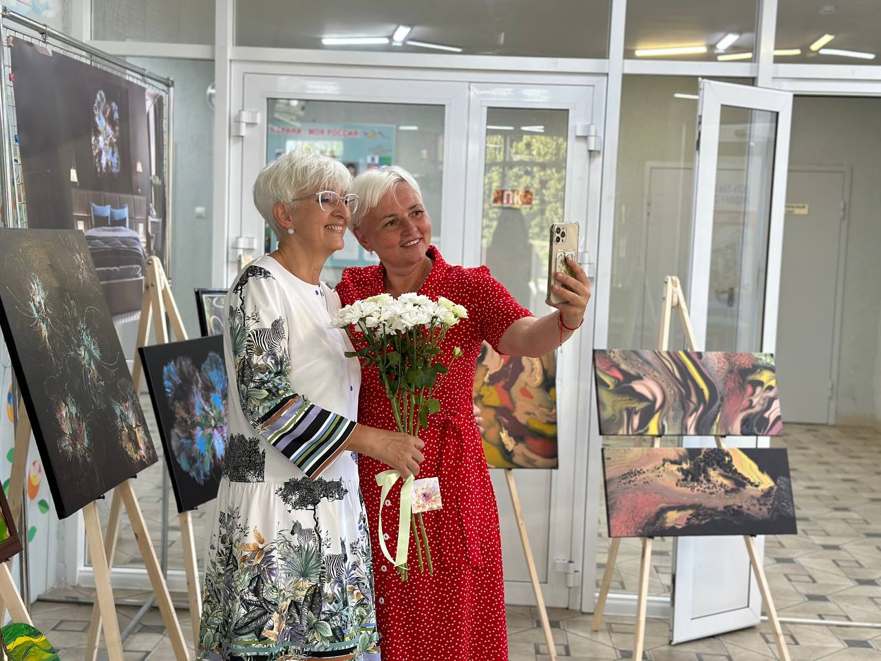 В минувшие выходные, 24 июня, в центре посёлка Ближняя Игуменка открылась выставка абстрактной живописи в стиле «Fluid Art» (форма абстрактного искусства, в которой для создания картины используются акриловые краски жидкой консистенции — прим. Ф.) . Автор полотен — белгородка Ирина Софьина. Её работы представляют собой неповторимые полотна с визуально ограниченными сюжетами.