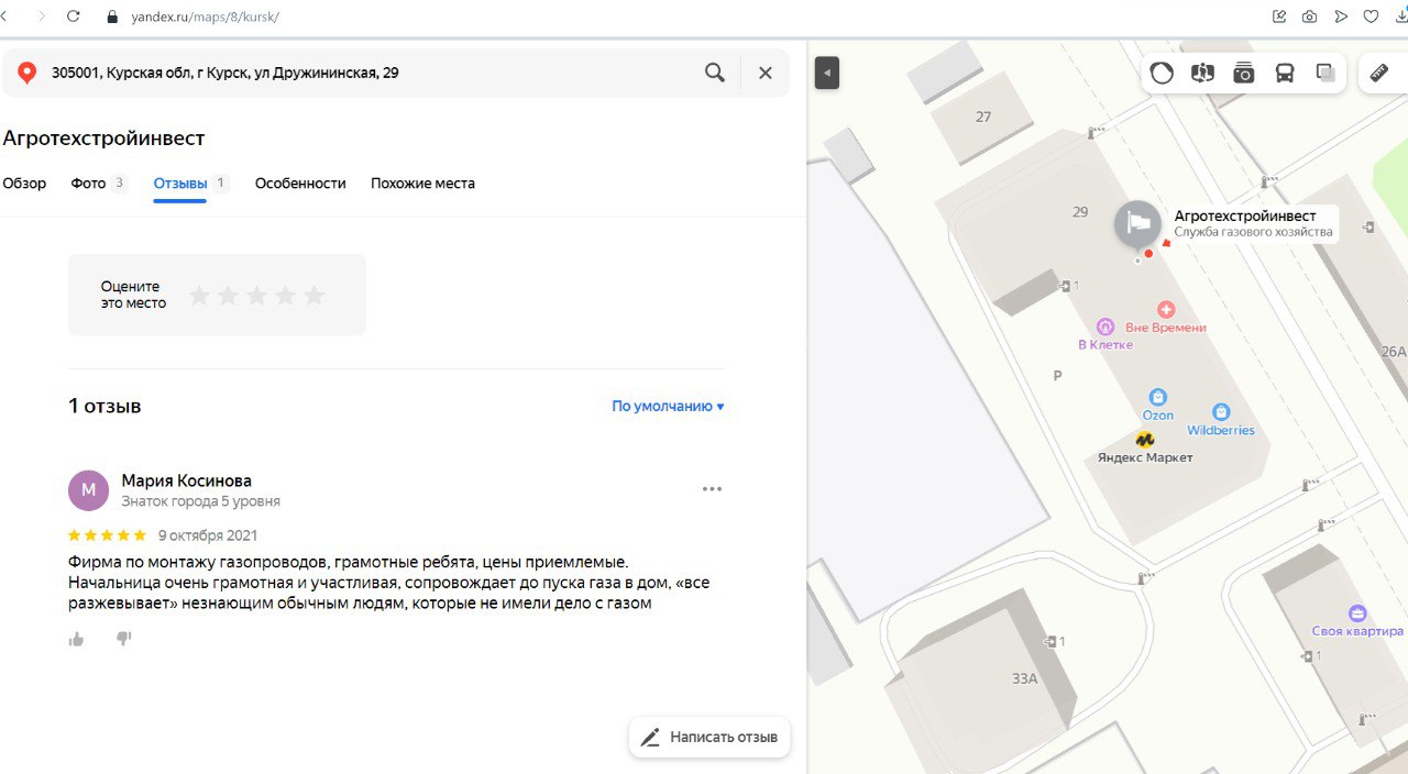 При этом единственный отзыв о компании, который «Фонарь» нашёл в «Яндексе», связан с работами по газоснабжению, за которые Мария Косинова в 2021 году похвалила «грамотных ребят» и их «грамотную и участливую начальницу» (скорее всего, речь идёт о гендиректоре Оксане Дороган — прим. Ф.).