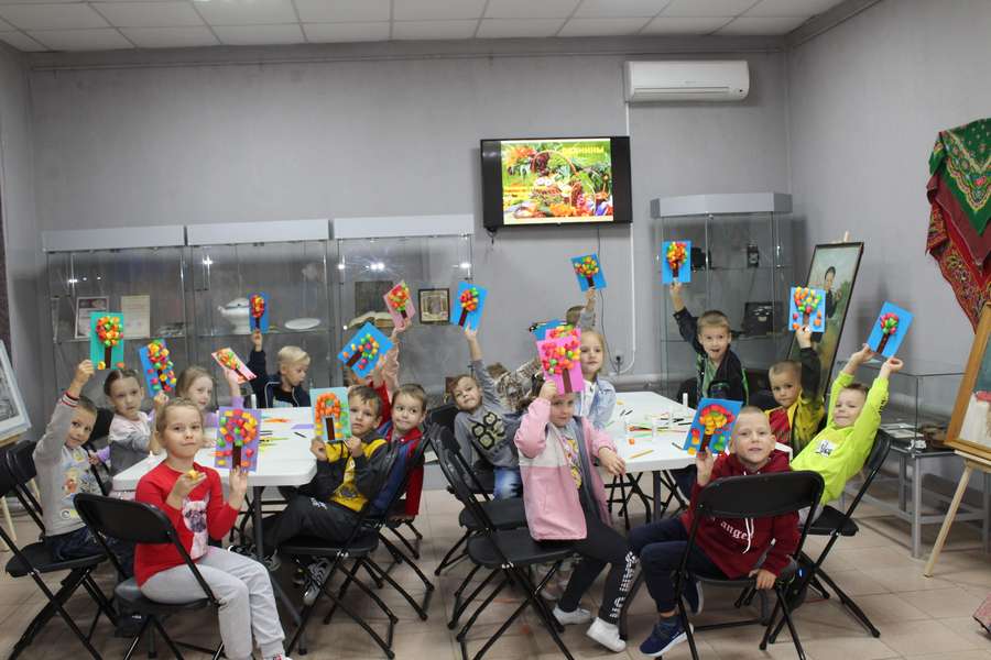 В конце программы все вместе сделали оригинальную поделку «осеннее дерево».
