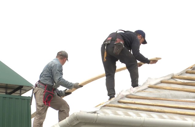 Так, в одном доме осколком снаряда пробило крышу. Специалисты приступили к восстановлению сразу после экспертизы: сначала — гидроизоляция, затем — монтаж металлочерепицы.