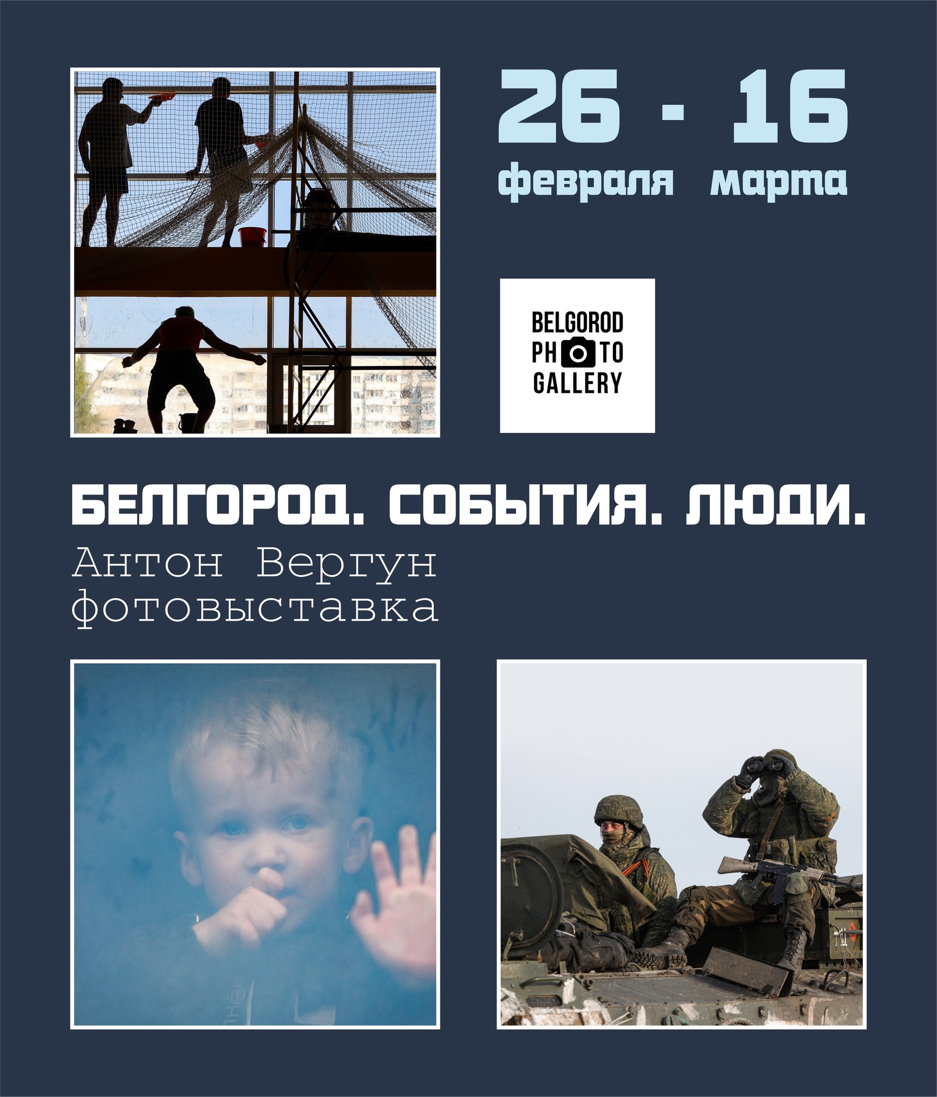 26 февраля в Новосибирске откроют фотовыставка, посвящённую городу Белгороду. Экспозиция под названием «Белгород. События. Люди» представит работы известного белгородского фотокорреспондента Антона Вергуна . Выставка продлится до 16 марта и пройдет в Сибирской мемориальной картинной галерее, расположенной на Красном проспекте, 16.