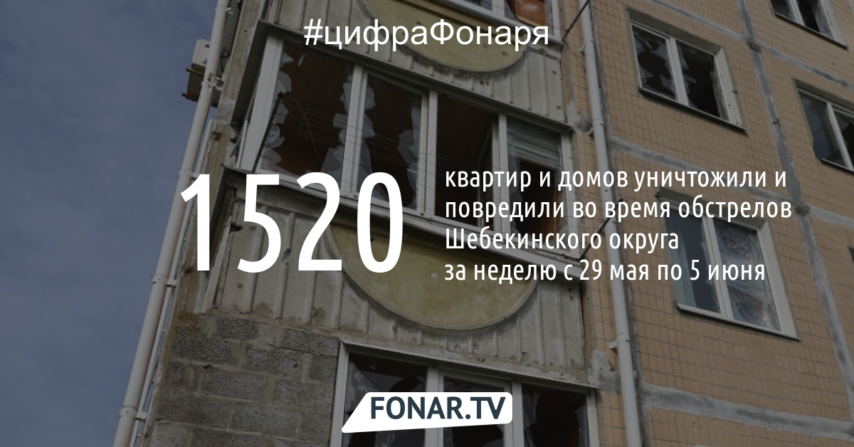 Глава Шебекинского округа Владимир Жданов на оперативном совещании правительства в понедельник, 5 июня, рассказал об ущербе, нанесённом обстрелами со стороны Украины. Так, по сведениям чиновника, в Шебекине за неделю повреждено и уничтожено 1 150 квартир. Они расположены в 67 многоквартирных домах, также на территории округа повреждения получили 370 частных жилых домов.