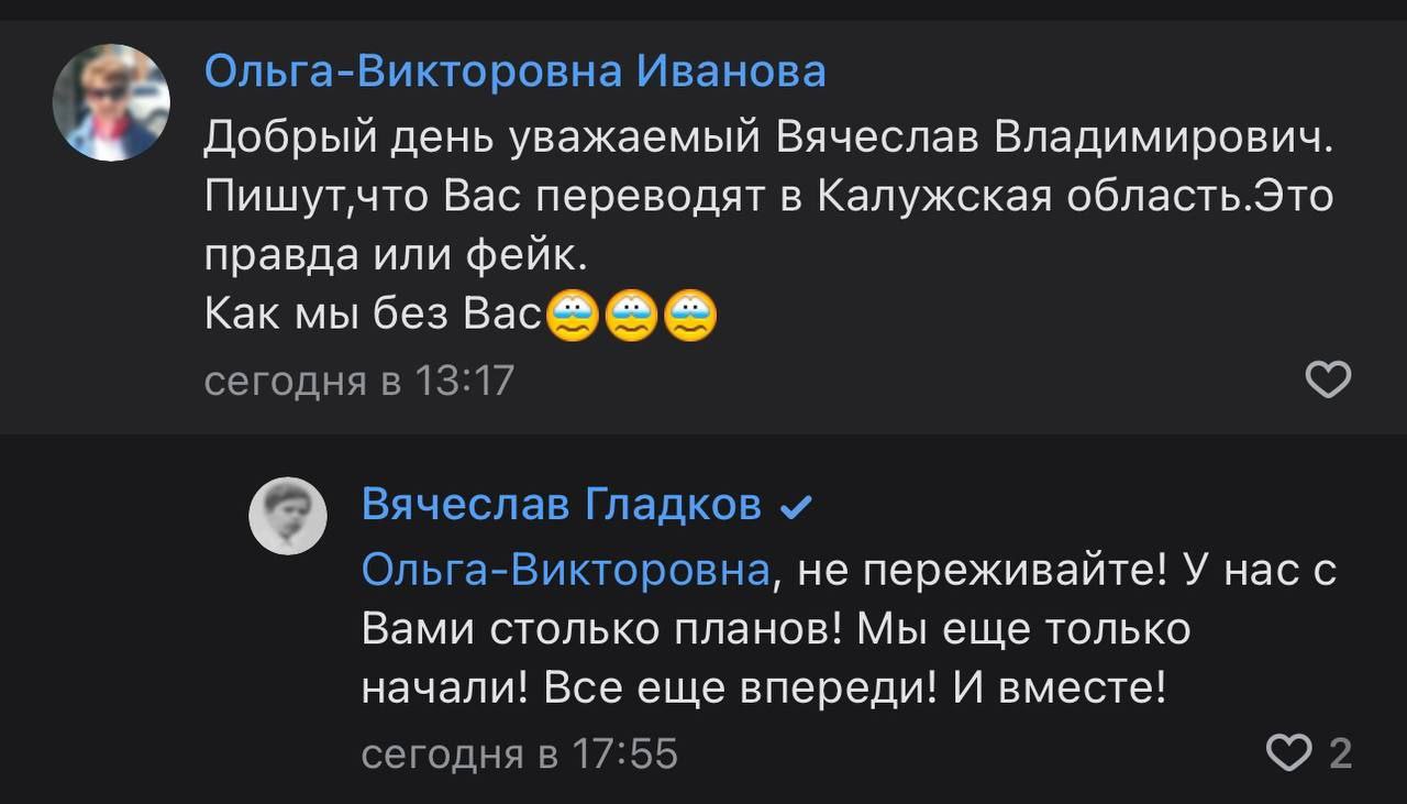 После участия белгородского губернатора в забеге в Калужской области некоторые телеграм-каналы и авторы в соцсетях почему-то стали публиковать домыслы, что якобы Вячеслав Гладков собрался перейти на работу в команду губернатора Владислава Шапши. СМИ не стали реагировать на подобные слухи, но некоторые пользователи в соцсетях не на шутку обеспокоились, поэтому стали даже писать об этом самому губернатору, и он отреагировал на эти обращения.