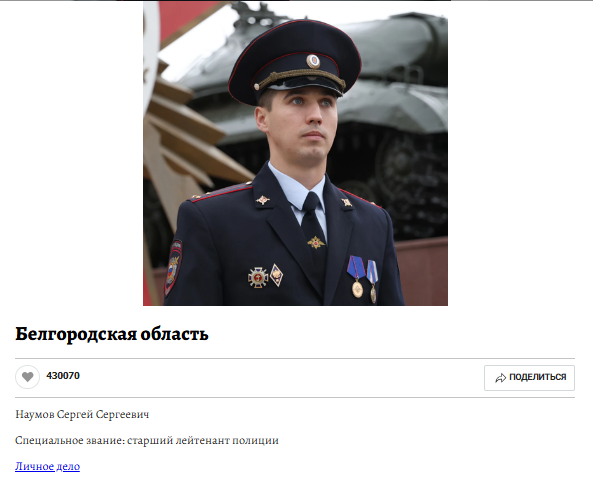 Сергей Наумов из Белгорода стал победителем голосования на конкурсе «Народный участковый-2024», опередив представителя Чечни более чем на 20 тысяч голосов.